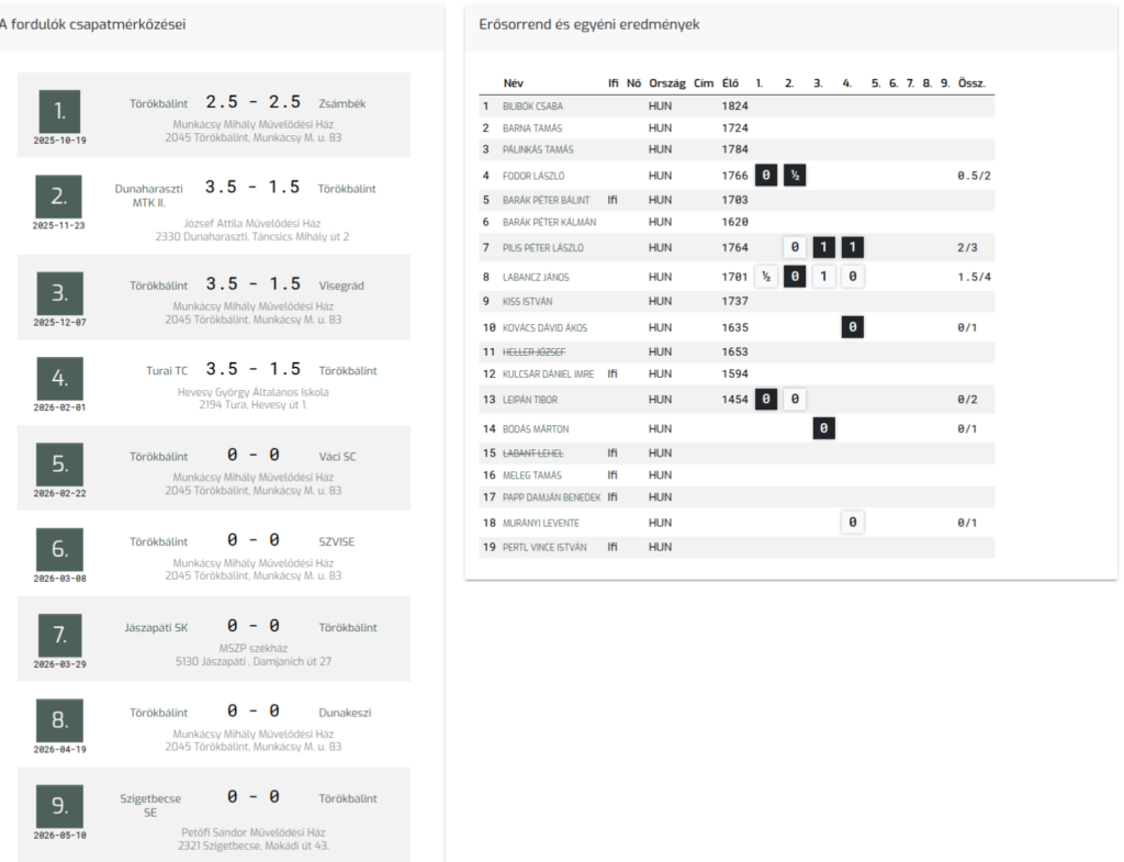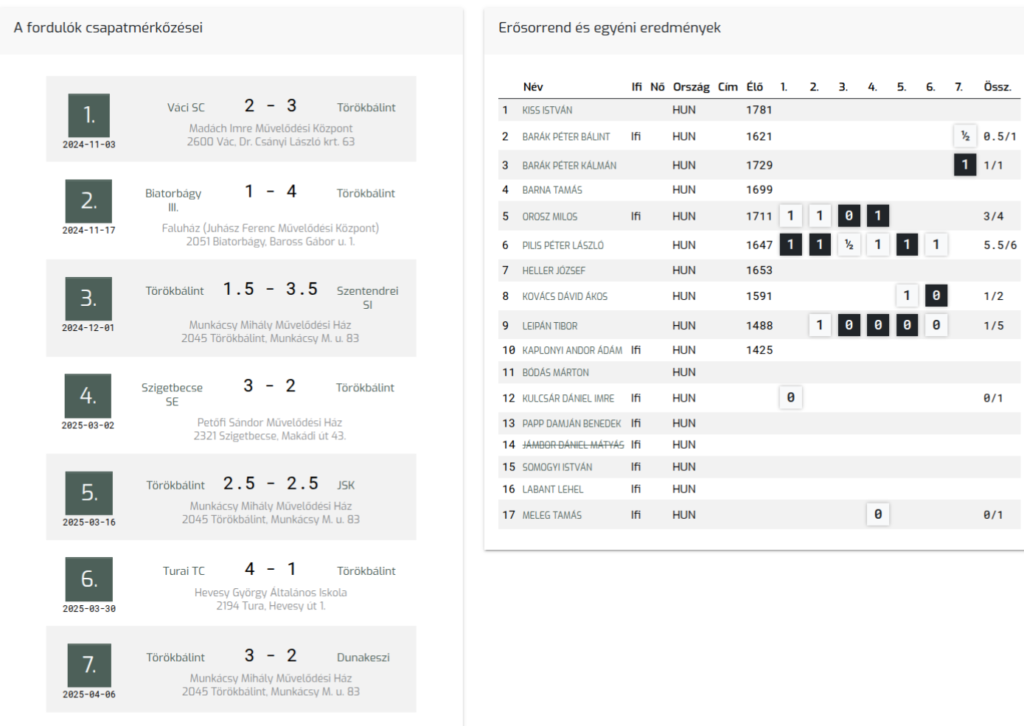 | 7 | Visegrád | ½ | 1,5 | 1 | 2 | 1 | 3,5 | * | 1 | 3 | 4,5 | 18 | 6 | 0 |